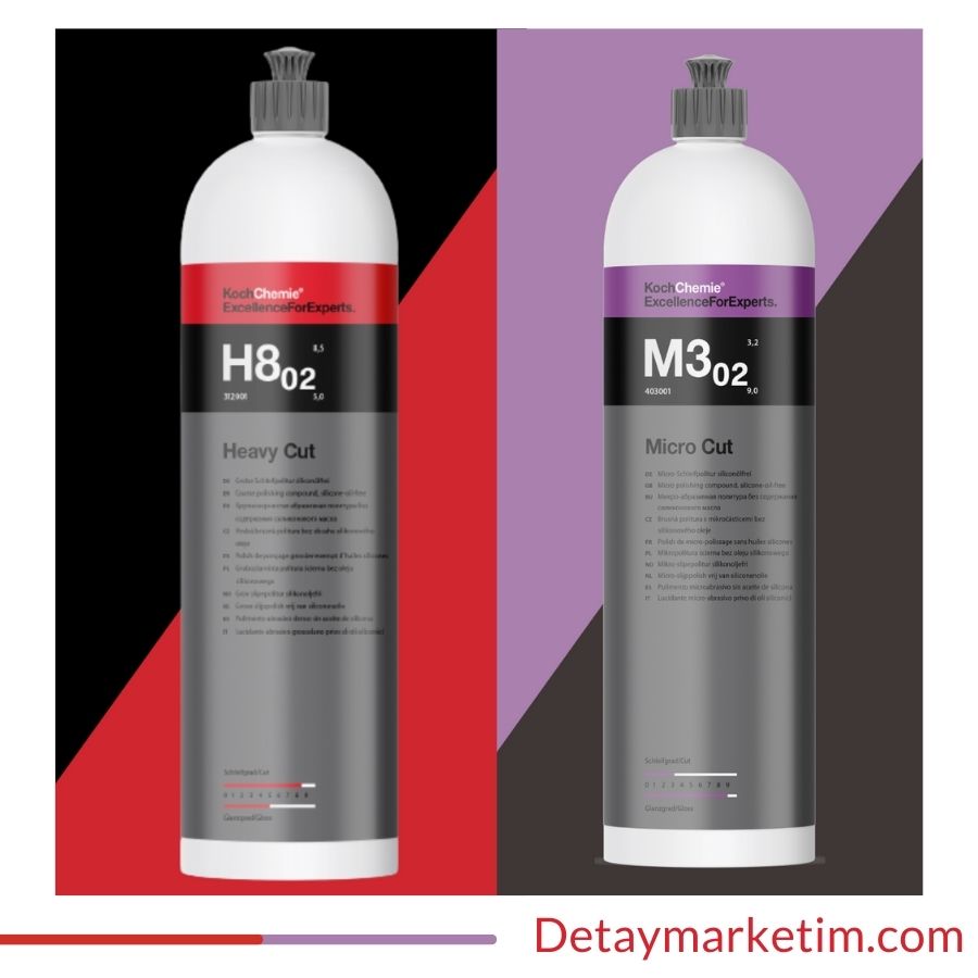 Koch Chemie'nin H8 ve M3 ürünlerinden oluşan bu profesyonel set, araç boyasındaki zorlu yüzey kusurlarını gidermek ve mükemmel bir parlaklık elde etmek için ideal bir çözümdür. H8, derin çizikler ve zorlu kusurlar için yüksek aşındırıcı etkisi sunarken, M3 hare ve hologram giderici ürün yüzeyin son kat parlaklığını mükemmel hale getirir. Araç boya koruma ve detaylandırma işlemlerinde en iyi sonuçları almak isteyenler için özel olarak tasarlanmıştır.