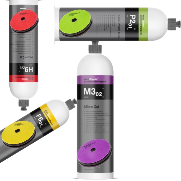 Profesyonel detailing stüdyoları için özel olarak hazırlanan KOCH CHEMIE dörtlü premium set, derin çiziklerden son kat korumaya kadar eksiksiz bir detailing deneyimi sunar. H9, F6, M3 ve P2'nin mükemmel kombinasyonu ile kusursuz sonuçlar.